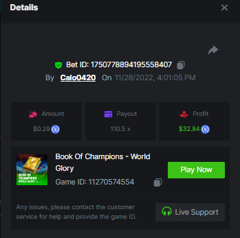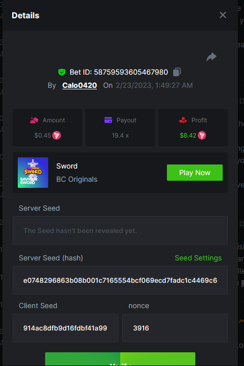 Calo0420 replied to BCGame_Maxim's topic in VIP Challenges