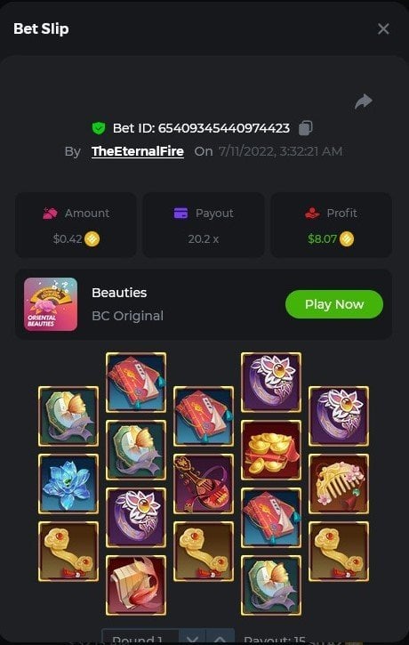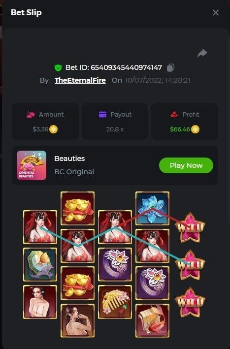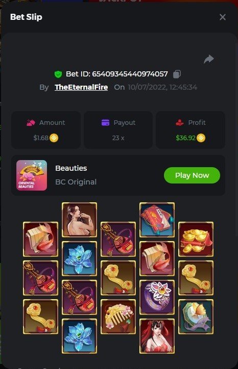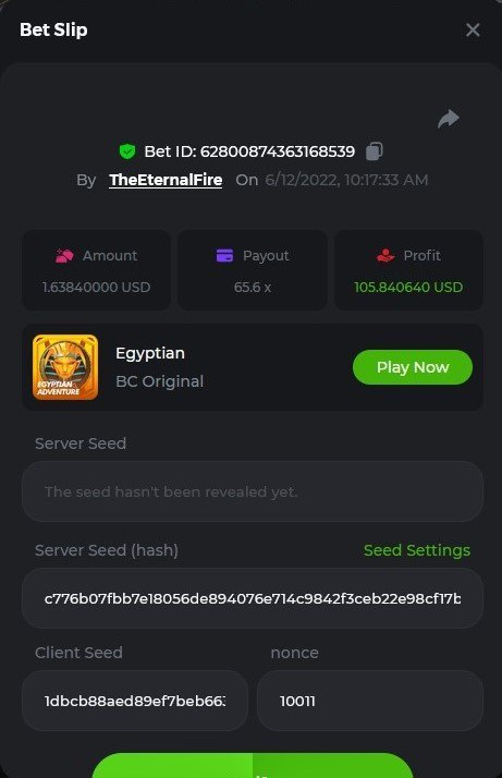 X83: Bet ID: 129193616991060246 https://bc.game/#/sd/116KJZBU600TUB ----- X130: Bet ID: 129444142433436075 https://bc.game/#/sd/116NAN0FM7WIS3 ---- X58: BET ID: 129619304084669553 https://bc.game/#/sd/116P9N5XJH32TV ---- X420 Bet ID: 129619304084671976 https://bc.game/#/sd/116PHFI0T492QB -