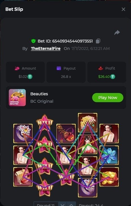 X11: https://bc.game/#/sd/112PB1RDW4KFF7 Bet ID: 114234641036083200 ------ X37: https://bc.game/#/sd/112PHIK3WYMO7N 114243351229761342 ----- X130: https://bc.game/#/sd/112PZL769BY70Z Bet ID: 114348912935960929 ----- X1000 : https://bc.game/#/sd/112P0AO42TDY4Z Bet ID: 114172076247483052 -