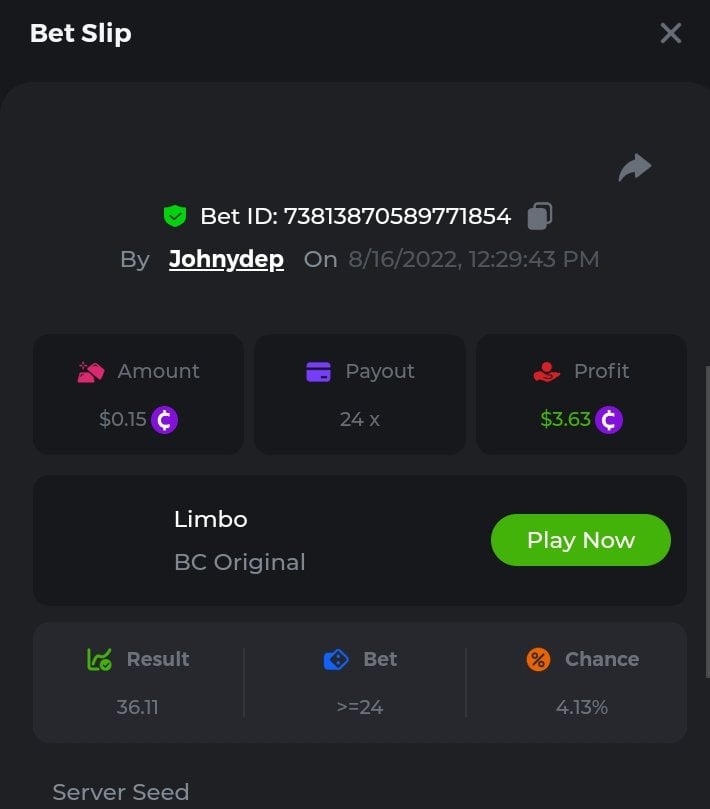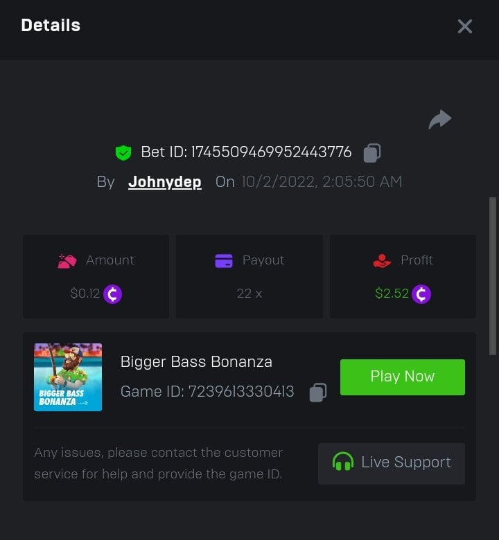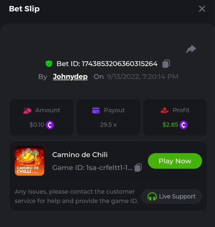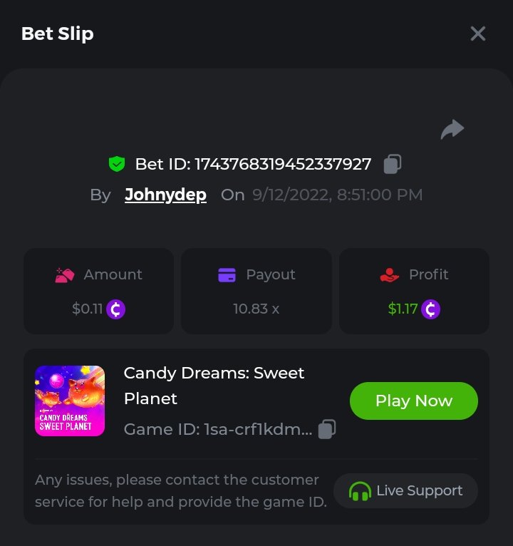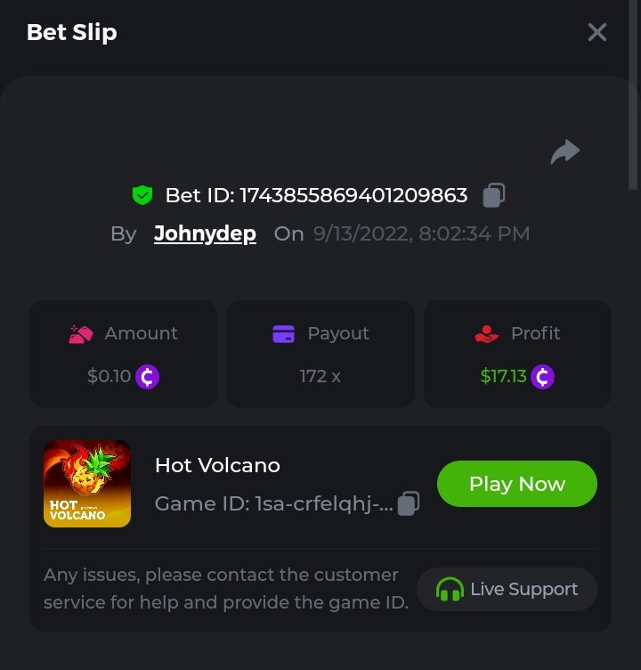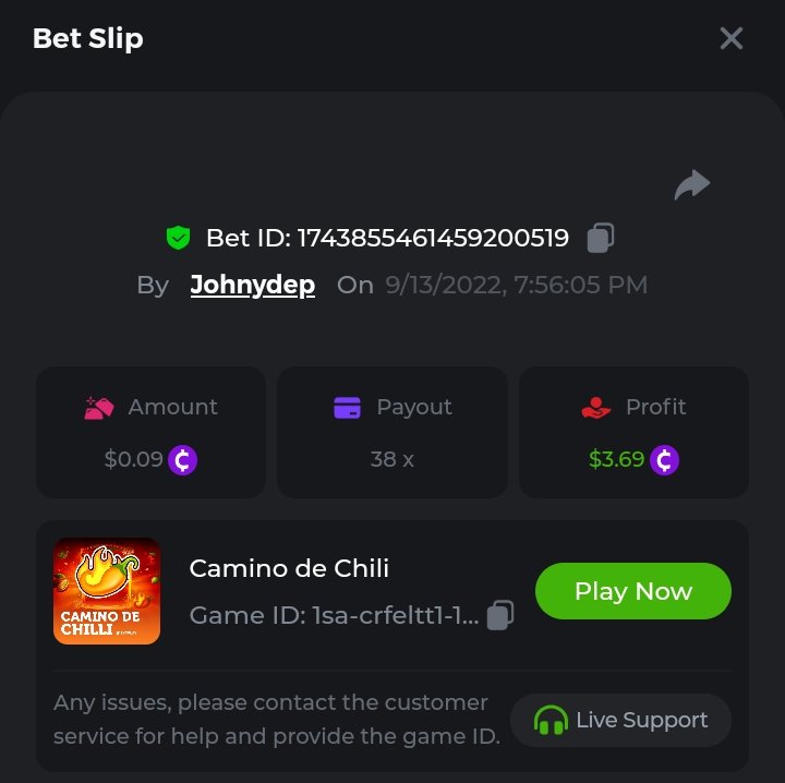 Summary of bets: Wolf Hiding - 92.1x https://bc.game/sd/?sd=10SWD3YOXODYC3 Hot Volcano - 172x https://bc.game/sd/?sd=10SWECOKO7LB0Z Camino de Chili - 43.6x https://bc.game/sd/?sd=10SWN4USZGTBF7 Candy Dreams: Sweet Planet - 110.9166x https://bc.game/sd/?sd=10SWCMDXTVZ40J ________________________________________________ Qualified Bets History: https://bc.game/sd/?sd=10SIRPXTYKVNRN https://bc.game/sd/?sd=10STXZI1P16043 https://bc.game/sd/?sd=10STZLEZ9JSUTV https://bc.game/sd/?sd=10SU090CTBS2DV https://bc.game/sd/?sd=10SU0IN62ZDGCZ https://bc.game/sd/?sd=10SU1F26JQA9SJ https://bc.game/sd/?sd=10SWBBN3RT8T1V https://bc.game/sd/?sd=10SWBQ3ZLH18NN https://bc.game/sd/?sd=10SWC5N7RQJ47N https://bc.game/sd/?sd=10SWCMDXTVZ40J https://bc.game/sd/?sd=10SWD3YOXODYC3 https://bc.game/sd/?sd=10SWDXU8FOPXJN https://bc.game/sd/?sd=10SWECOKO7LB0Z https://bc.game/sd/?sd=10SWMIN6PWG5CJ https://bc.game/sd/?sd=10SWN4USZGTBF7
