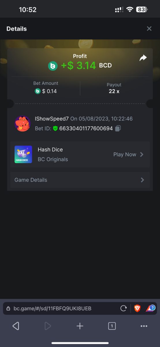 9. 22x: https://bc.game/#/sd/11FBFQ9UKI8UEB 33x: https://bc.game/#/sd/11FBFOK6ZXSYCJ 44x: https://bc.game/#/sd/11FBFNDXFEKKK3