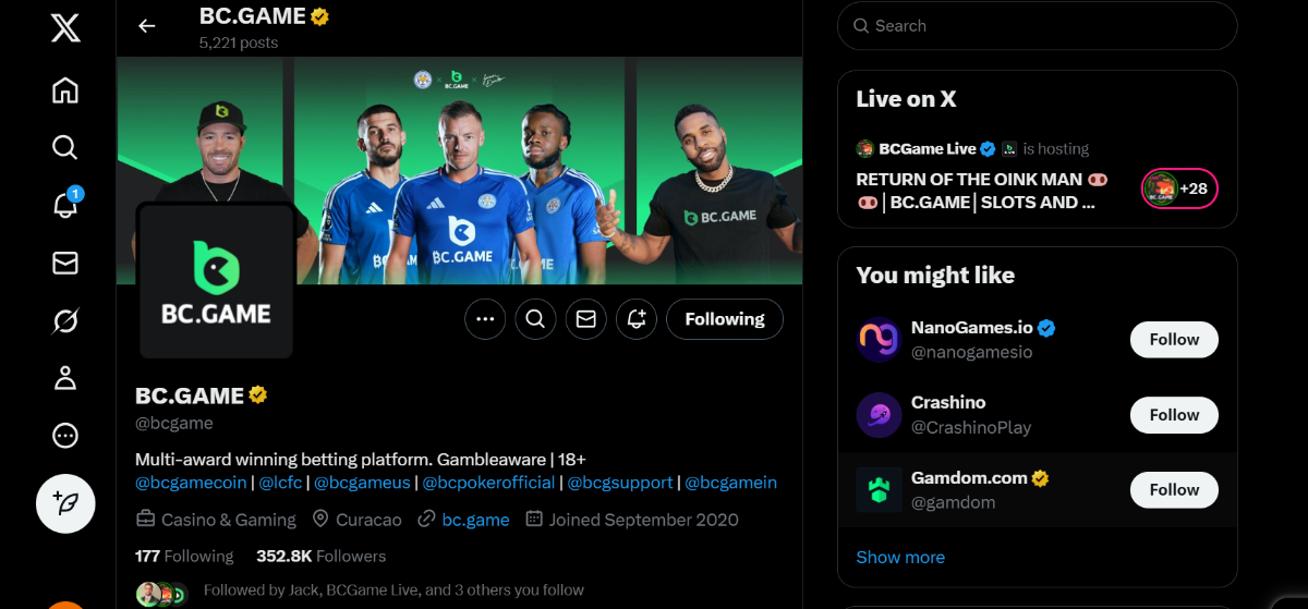 5- Like and Retweet BC.GAME's latest post and tag at least 3 of your friends. Take a screenshot and include your Twitter username in the forum.