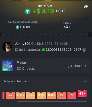 4. https://bc.game/#/sd/11INTM34DYRMDJ I bet 0.2 USDT, the page says it as 0.19