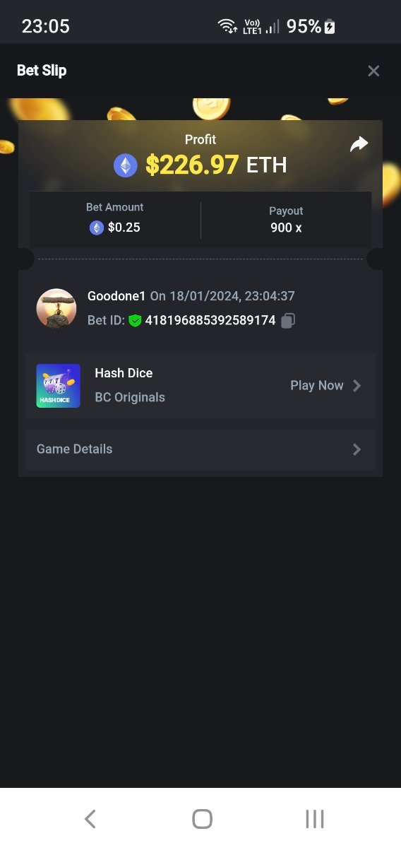 hi.... i didnt receive the rewards for challenges 110. ID 387973. i didd post my result of hitting x900 on HaashDice..pls check. thanks