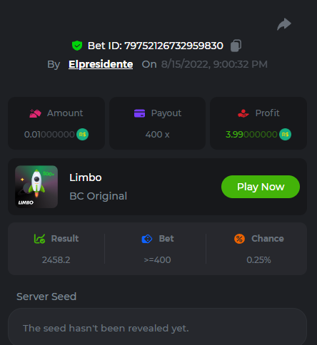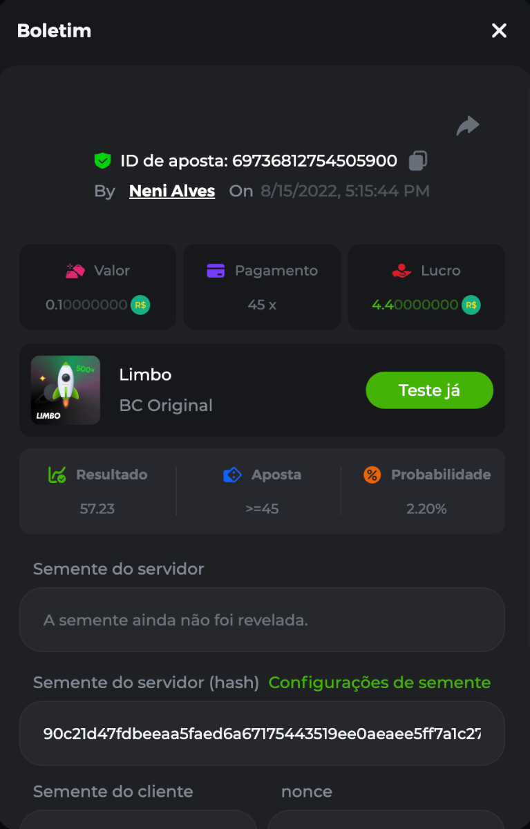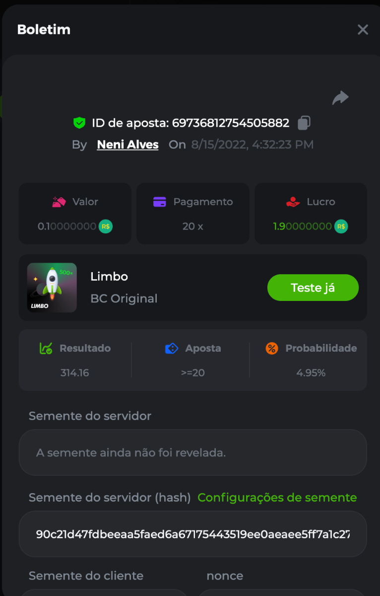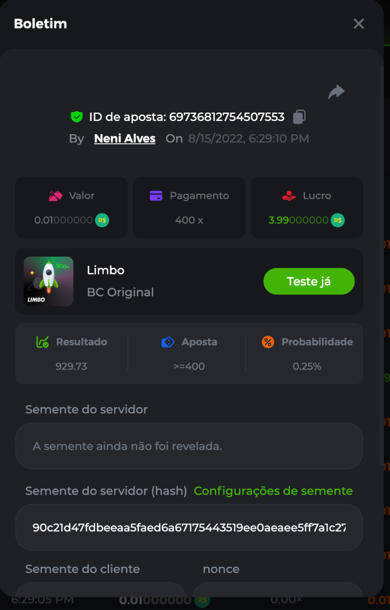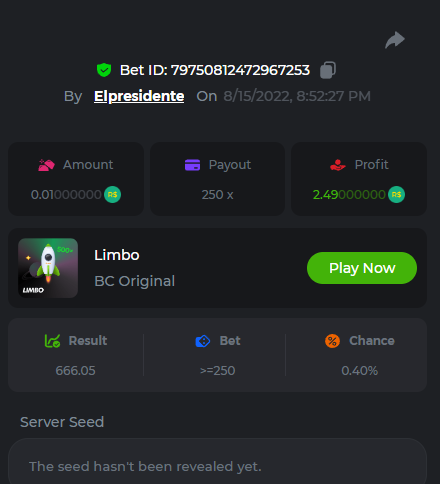 BC-Alerquina Posted August 18, 2022 Share Posted August 18, 2022 On 8/15/2022 at 1:43 PM, BCGame_Mateus said: 250 BRL Semanal Evento Limbo Termina: 21, Ago 23:59 -3 UTC "Event restricted to users from the Portuguese Community" Vamos explorar o universo com o foguete Limbo. Um foguete não voará a menos que alguém acenda o fusível, para isso vocês precisam completar o maior número de multiplicadores exatos. A galáxia inteira é sua e uma parte do prêmio total de 250 BRL também pode ser sua. Lembre-se: o céu não é o limite, há pegadas na lua Qual é o desafio? Complete o máximo dos 30 pagamentos a seguir em nosso Limbo interno . Deve ser um multiplicador exato. | 20x | 30x | 45x | 55x | 60x | 65x | 70x | 90x | 120x | 200x | 250x | 300x | 400x | 450x | 550x | 700x | 825x | 900x | 1000x | 1200x | 1500x | 2000x | 2500x | 3000x | 4000x | 5000x | 6000x | 7000x | 8000x | 9000x | 10000x | Cada pagamento que você acertar acima conta como 1 ponto (máximo de 1 ponto para cada pagamento). Se houver empate, o jogador com o maior valor médio de aposta (em BRL) será o vencedor. Se houver empate no valor e no pagamento, será considerado no Ranking aquele que postou ou editou seu post primeiro. VIP mínimo Não há nível VIP mínimo Pagamentos mínimos Acerte pelo menos 3 pagamentos para se qualificar Aposta Mínima Equivalente a 0.01 BRL Coins elegíveis Todas as criptomoedas são elegíveis (exceto JB) Prêmios disponíveis 1º lugar ....... 70 BRL 2º lugar ....... 50 BRL 3º Lugar ....... 30 BRL 4º Lugar ....... 20 BRL 5º Lugar ....... 10 BRL 6º Lugar ....... 5 BRL 7º Lugar ....... 5 BRL Os 60 BRL restantes serão divididos entre todos os outros jogadores que atenderem aos requisitos mínimos, pagamentos mínimos e aposta mínima. Caso o evento ultrapasse 50 usuários a premiação do evento será dobrada Como participar: Para participar, copie o link da aposta que deseja enviar. Depois de copiá-lo, cole-o como resposta a este tópico da seguinte forma: Link: https://bc.game/sd/?sd=10QUOJE1NMVTOZ Na mesma postagem, faça upload de uma captura de tela de sua vitória clicando no ID do jogo COM VISUALIZAÇÃO no modo BRL ATIVADO (acessível na parte inferior do menu suspenso da sua carteira na parte superior. Dessa forma, podemos garantir que sua aposta realmente atendeu ao requisito mínimo no momento da colocação: Link: https://bc.game/sd/?sd=10QUOJE1NMVTOZ Por favor, combine todos os seus hits em um ÚNICO post. Edite sua postagem existente para obter hits adicionais, não crie uma nova postagem. As apostas devem ser postadas dentro de 24 horas após a colocação da aposta para manter as coisas justas para todos. As apostas devem ser feitas durante a janela de tempo especificada acima. Este encadeamento será bloqueado automaticamente quando o período de tempo terminar. Uma (1) entrada por família. Qualquer pessoa encontrada tentando ganhar vários prêmios será desqualificada deste desafio, bem como de todos Boa sorte! https://bc.game/sd/?sd=10R49SN0UIFXUB Link to comment Share on other sites More sharing options...