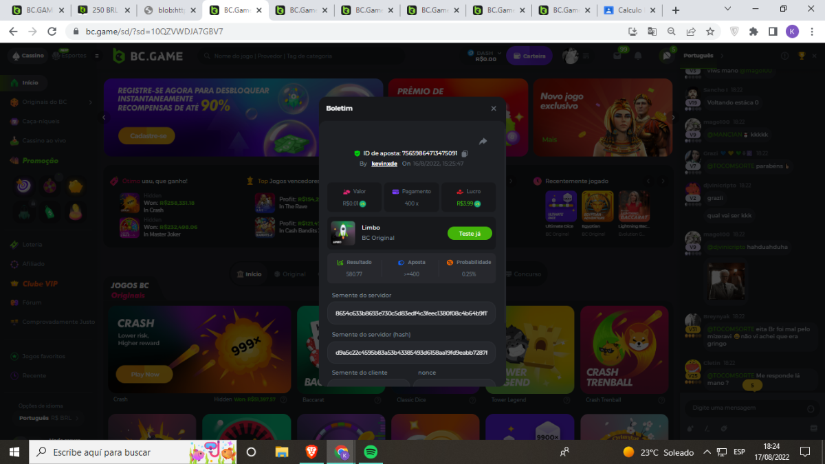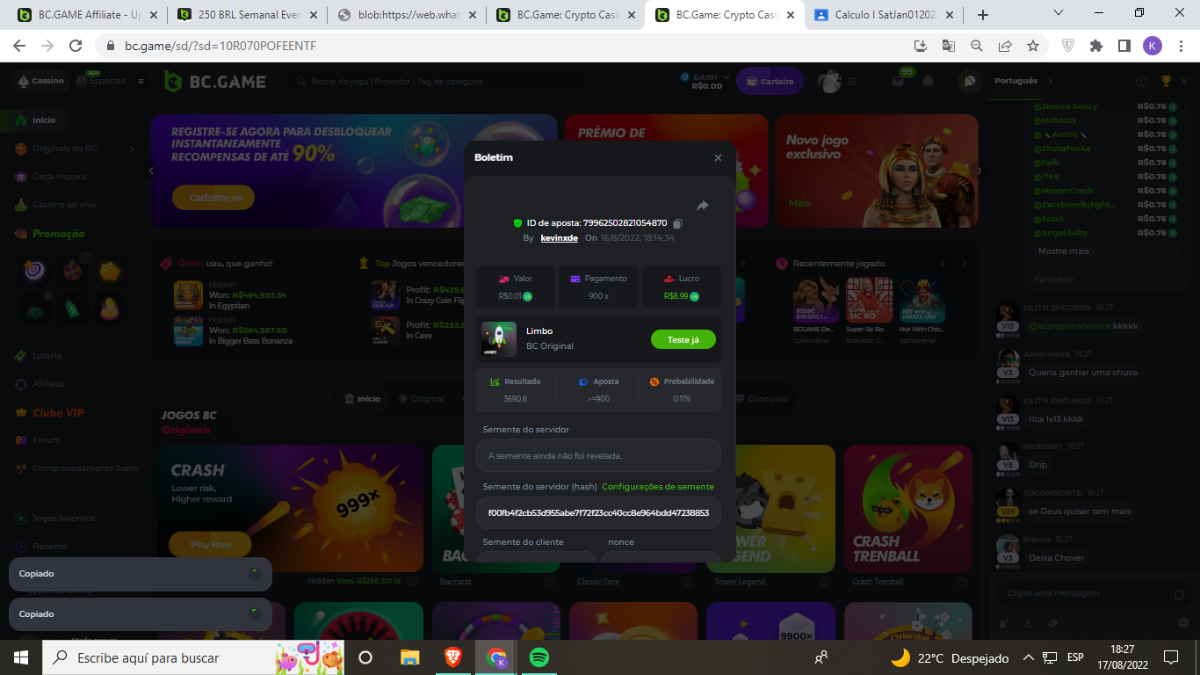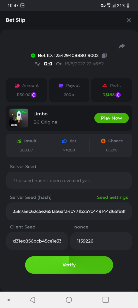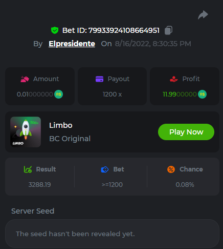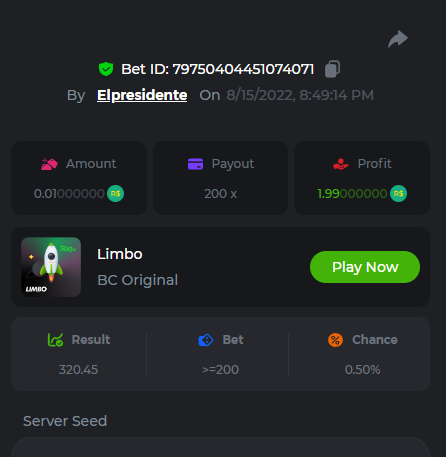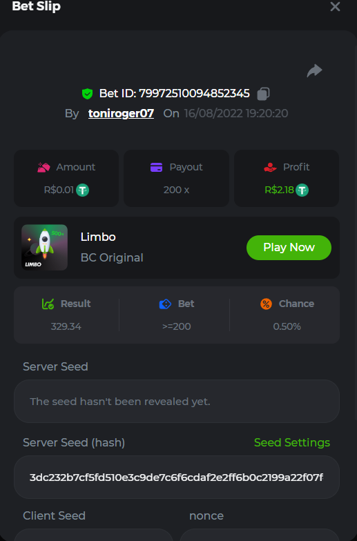 BC-Alerquina Posted August 18, 2022 Share Posted August 18, 2022 On 8/15/2022 at 1:43 PM, BCGame_Mateus said: 250 BRL Semanal Evento Limbo Termina: 21, Ago 23:59 -3 UTC "Event restricted to users from the Portuguese Community" Vamos explorar o universo com o foguete Limbo. Um foguete não voará a menos que alguém acenda o fusível, para isso vocês precisam completar o maior número de multiplicadores exatos. A galáxia inteira é sua e uma parte do prêmio total de 250 BRL também pode ser sua. Lembre-se: o céu não é o limite, há pegadas na lua Qual é o desafio? Complete o máximo dos 30 pagamentos a seguir em nosso Limbo interno . Deve ser um multiplicador exato. | 20x | 30x | 45x | 55x | 60x | 65x | 70x | 90x | 120x | 200x | 250x | 300x | 400x | 450x | 550x | 700x | 825x | 900x | 1000x | 1200x | 1500x | 2000x | 2500x | 3000x | 4000x | 5000x | 6000x | 7000x | 8000x | 9000x | 10000x | Cada pagamento que você acertar acima conta como 1 ponto (máximo de 1 ponto para cada pagamento). Se houver empate, o jogador com o maior valor médio de aposta (em BRL) será o vencedor. Se houver empate no valor e no pagamento, será considerado no Ranking aquele que postou ou editou seu post primeiro. VIP mínimo Não há nível VIP mínimo Pagamentos mínimos Acerte pelo menos 3 pagamentos para se qualificar Aposta Mínima Equivalente a 0.01 BRL Coins elegíveis Todas as criptomoedas são elegíveis (exceto JB) Prêmios disponíveis 1º lugar ....... 70 BRL 2º lugar ....... 50 BRL 3º Lugar ....... 30 BRL 4º Lugar ....... 20 BRL 5º Lugar ....... 10 BRL 6º Lugar ....... 5 BRL 7º Lugar ....... 5 BRL Os 60 BRL restantes serão divididos entre todos os outros jogadores que atenderem aos requisitos mínimos, pagamentos mínimos e aposta mínima. Caso o evento ultrapasse 50 usuários a premiação do evento será dobrada Como participar: Para participar, copie o link da aposta que deseja enviar. Depois de copiá-lo, cole-o como resposta a este tópico da seguinte forma: Link: https://bc.game/sd/?sd=10QUOJE1NMVTOZ Na mesma postagem, faça upload de uma captura de tela de sua vitória clicando no ID do jogo COM VISUALIZAÇÃO no modo BRL ATIVADO (acessível na parte inferior do menu suspenso da sua carteira na parte superior. Dessa forma, podemos garantir que sua aposta realmente atendeu ao requisito mínimo no momento da colocação: Link: https://bc.game/sd/?sd=10QUOJE1NMVTOZ Por favor, combine todos os seus hits em um ÚNICO post. Edite sua postagem existente para obter hits adicionais, não crie uma nova postagem. As apostas devem ser postadas dentro de 24 horas após a colocação da aposta para manter as coisas justas para todos. As apostas devem ser feitas durante a janela de tempo especificada acima. Este encadeamento será bloqueado automaticamente quando o período de tempo terminar. Uma (1) entrada por família. Qualquer pessoa encontrada tentando ganhar vários prêmios será desqualificada deste desafio, bem como de todos Boa sorte! https://bc.game/sd/?sd=10R49SN0UIFXUB Link to comment Share on other sites More sharing options...