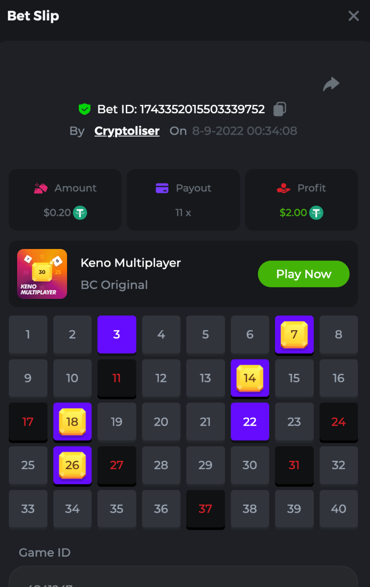 Lin Posted September 7, 2022 Share Posted September 7, 2022 (edited) On 9/6/2022 at 4:43 PM, SLVone said: 17,1x count 17x? Complete as many of the following 19 payouts on either KENO or KENO Multiplayer. Must be a exact muliplier. | 11x | 17x | Should be 17x not 17.1 must be exact multi. Edited September 7, 2022 by Lin Link to comment Share on other sites More sharing options...