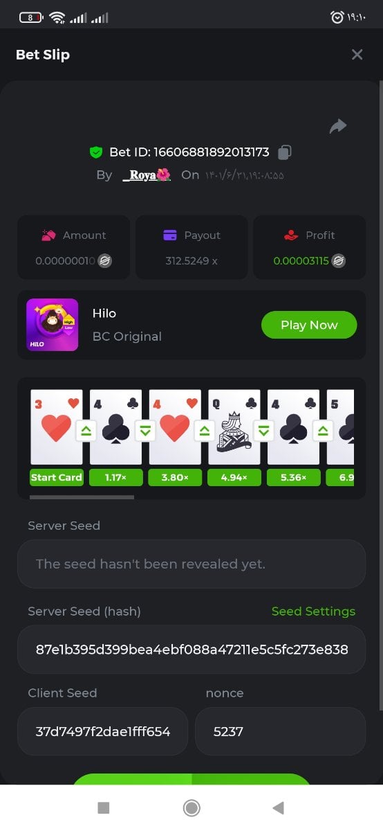 • Eric-bc-love changed the title to چالش 125 دلاری بازی هایلو / HiLo