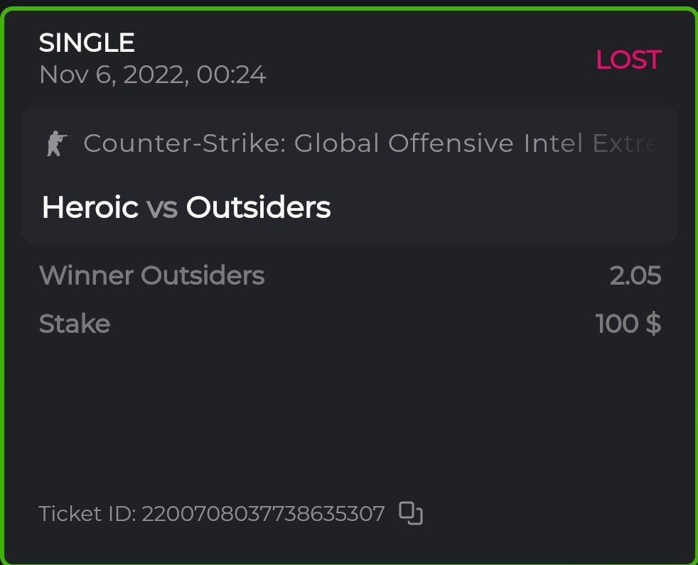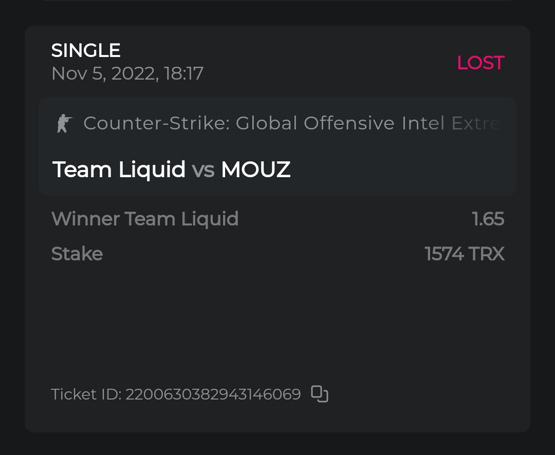 • Bet result with “lost” is valid to submit the ticket id.