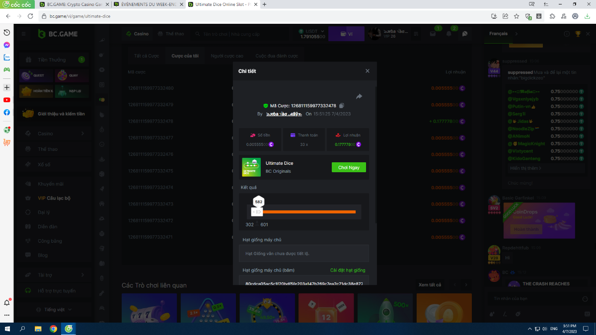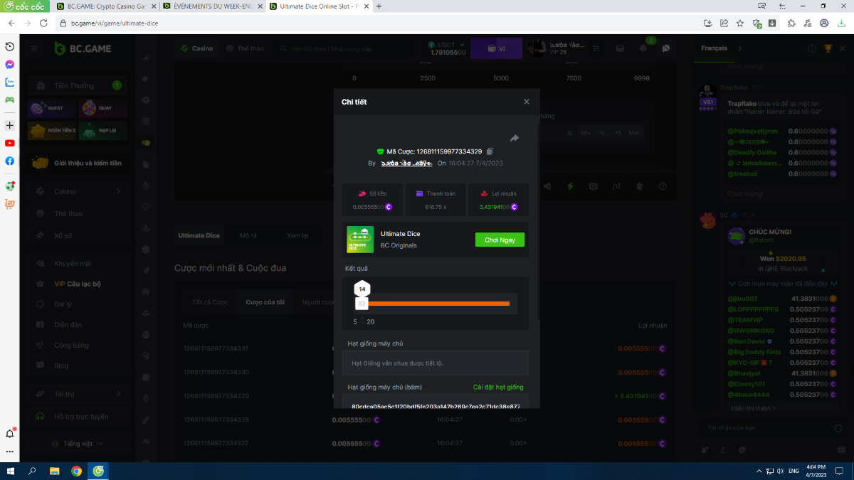 Complétez autant des 17 paiements suivants sur BC original👍 ULTIMATE DICE (https://bc.game/fr/game/ultimate-dice)👍. Doit être un multiplicateur exact ou très proche.