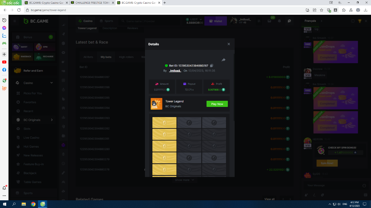 Member AkSyEn03 Posted April 7, 2023 Member Share Posted April 7, 2023 LÉGENDE DE LA TOUR $48 Exclusif Prestige TOWER LEGEND Challenge #83 Début : 07 avril 09h00 UTC ️Fin : 14 avril à 09h00 UTC Cagnotte : 48 $ ️ Qu'est-ce que le défi Salut les VIP ! Enfilez vos baskets et courez jusqu'au SOMMET de chaque tour pour remporter la cagnotte de cette semaine ! Veuillez consulter ci-dessous le tout nouveau tableau de distribution de la cagnotte pour en savoir plus. Nous allons essayer cette nouvelle méthode pendant un certain temps et en fonction des participations et des retours, nous augmenterons encore nos cagnottes. Prix disponibles 1er..............$15 2ème..........$10 3ème..........$5 4 à 13.........$2 Rejoignez et faites un basebet d'au moins 0,15, vous pouvez rejoindre 2 événements en même temps événement régional événement forum et obtenez une double récompense !!! Min Payout : Atteignez le sommet d'une tour à n'importe quel niveau de difficulté. Niveau VIP minimum : pas de niveau VIP minimum Mise minimale Facile – 0.05 $ Moyen - 0,025 $ Dur – 0,0125 $ Extrême - 0,00625 $ Cauchemar - 0,003125 $ Lisez les détails complets et les règles sur la PAGE DE L'ÉVÉNEMENT SOUMETTRE VOS INSCRIPTIONS ICI BCGAME Link to comment Share on other sites More sharing options...
