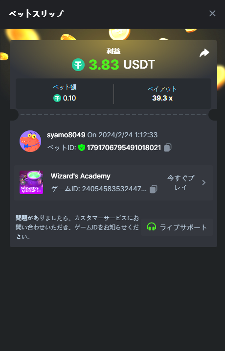 bassabar Posted February 23, 2024 Share Posted February 23, 2024 (edited) Highest multiplier: Deadliest Sea - 1950.6976x https://bc.game/#/sd/11TLGQLGWPG70N (Lower multies) Runaway! Zombieshttps://bc.game/#/sd/11TCQ47JITIDBV 210.715x Wizard's Academy https://bc.game/#/sd/11TCNEFBA3EN67 525.749x Dragon Questhttps://bc.game/#/sd/11T8Q3XZB6KONJ 280.2802x John Wildhttps://bc.game/#/sd/11TCEMC530RYXV 543.1x Edited February 29, 2024 by bassabar 1 Link to comment Share on other sites More sharing options...