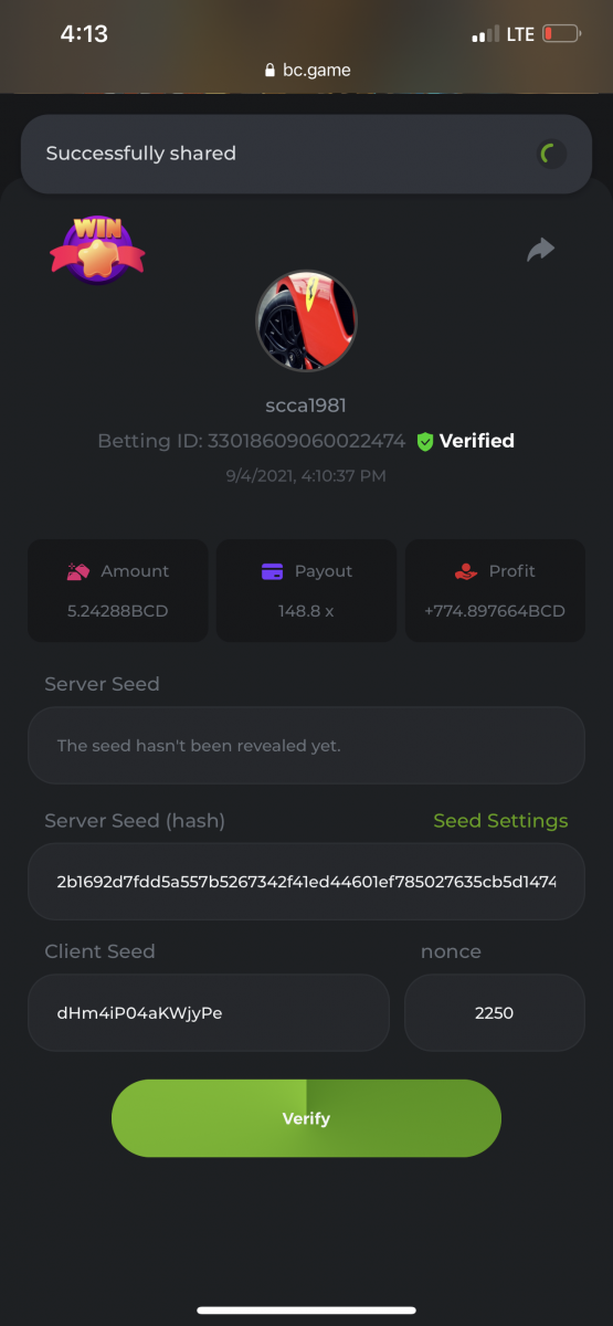 scca1981 Posted September 8, 2021 Share Posted September 8, 2021 Some wins from over the weekend. Was short lived though got absolutely crushed today. Nothing would win no matter bet size or seed. Kind of interesting honestly. Link to comment Share on other sites More sharing options...